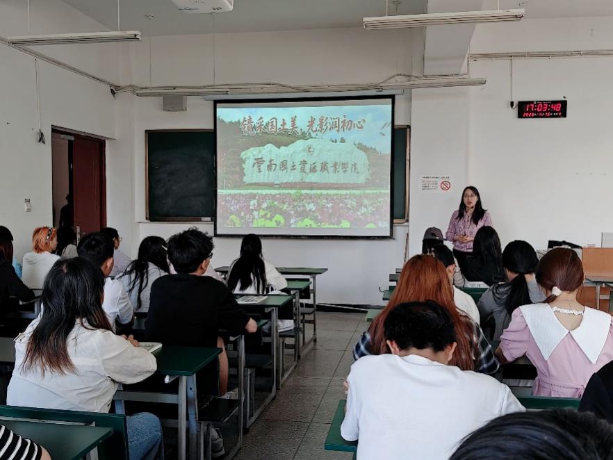 4月16日,bbin宝盈教师杨丽在阳宗海校区崇319教室正式启动“镜采国土美,光影润初心”主题摄影实践活动,国土空间信息学院24级国土资源调查与管理2班的55名学生参加了此次活动。